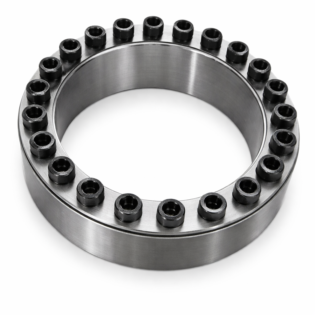 Composto por dois anéis cônicos bipartidos, anel interno e anel externo, o sistema cria uma união por atrito altamente confiável, dispensando chavetas e oferecendo maior tolerância de montagem. Ideal para acoplamentos industriais que exigem robustez, precisão e facilidade de instalação.