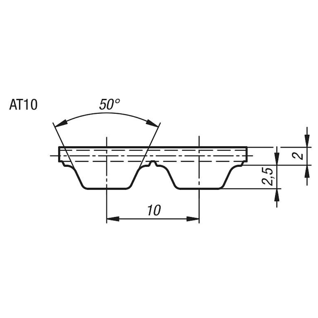 • Passo AT10 (5 mm): precisão milimétrica para sincronismo perfeito.