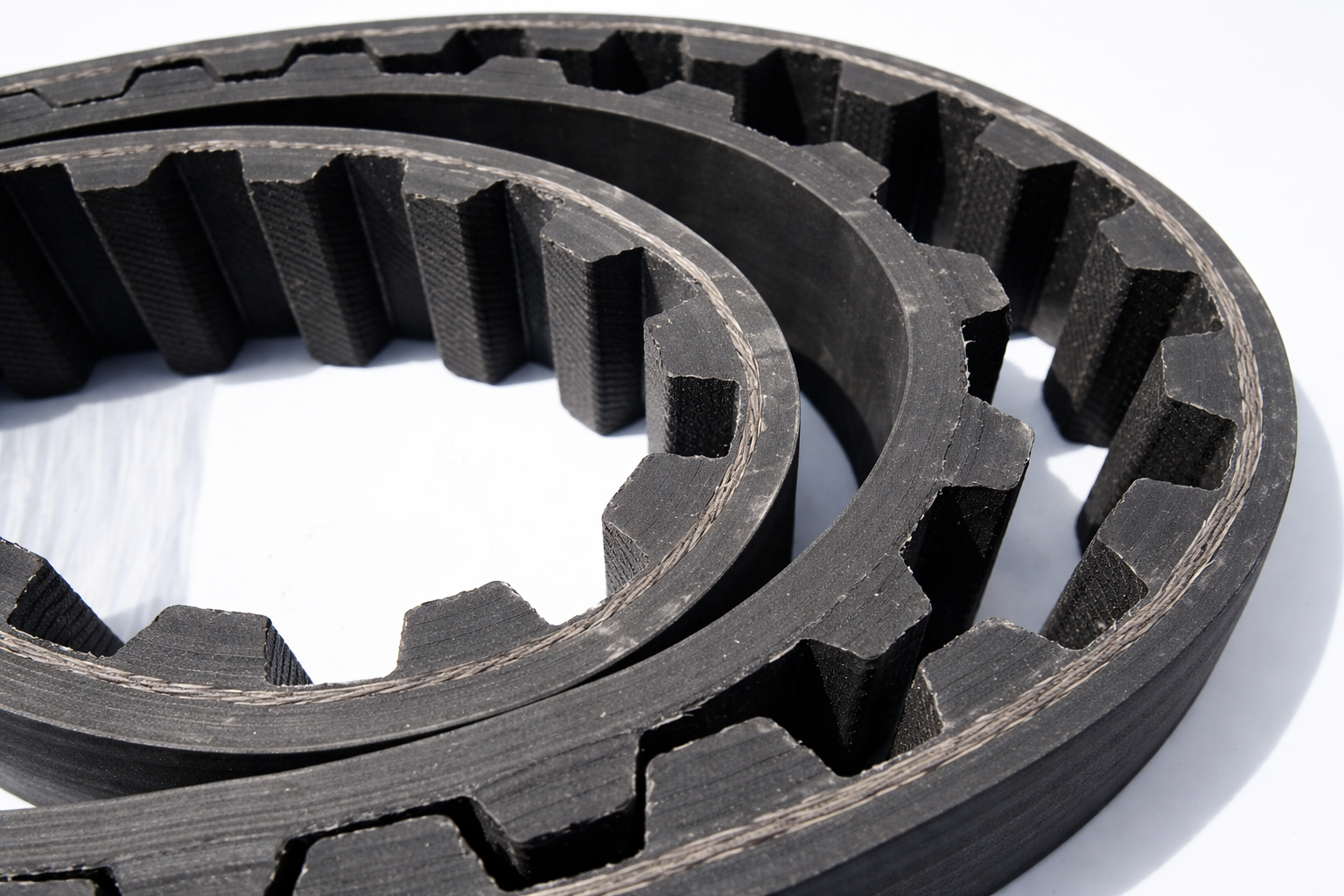 • Estabilidade Dimensional: Reforçada com cordonéis internos que impedem o alongamento da correia, mantendo o tensionamento correto por muito mais tempo.