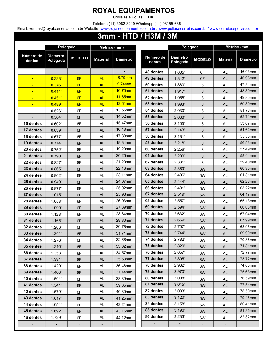 POLIA IND. ROYAL 19 DENTES 3M 9MM TIPO 6F AL