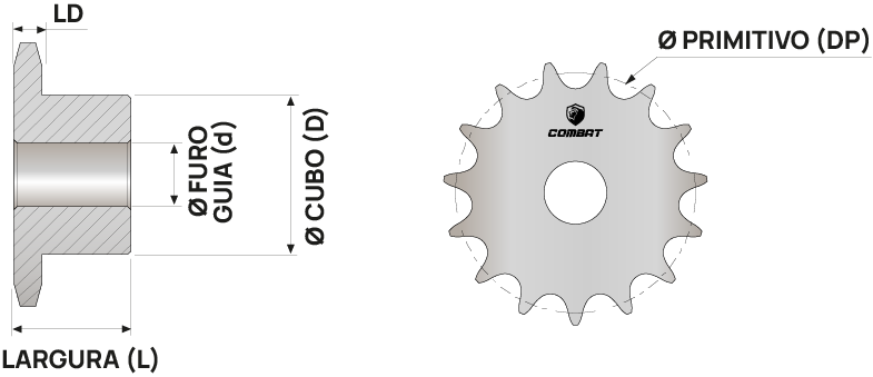 Compatível com correntes padrão ANSI 25 (1/4”), apresenta usinagem precisa e acabamento técnico refinado, desempenho estável em altas rotações, resistência superior à fadiga mecânica e ao desgaste, além de opções sob medida com chaveta, bucha cônica ou furo guia personalizado, garantindo máxima eficiência, durabilidade e precisão industrial.